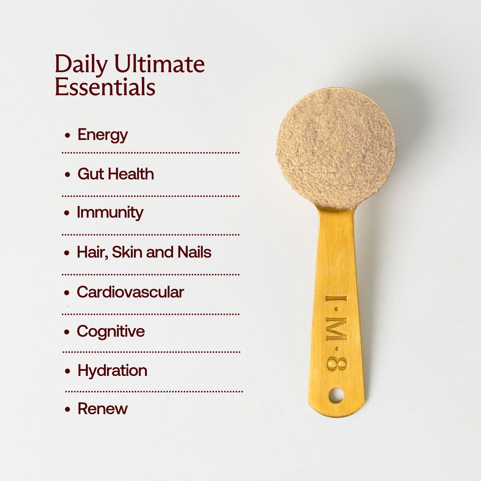 IM8 Daily Essentials is your all-in-one solution, replacing the need for 16 supplements, targeting eight key areas of health: Energy, Immunity, Cognitive Function, Digestion, Cardiovascular Health, Hydration, Nourishment, and Cellular Renewal. With 92 carefully selected premium ingredients, including CoQ10 (100mg) for heart health and MSM (1,000mg) for joint support, IM8 Daily Essentials makes it easier to live a healthier, more vibrant life. Plus, it tastes great, so it's something you'll look forward to each day.