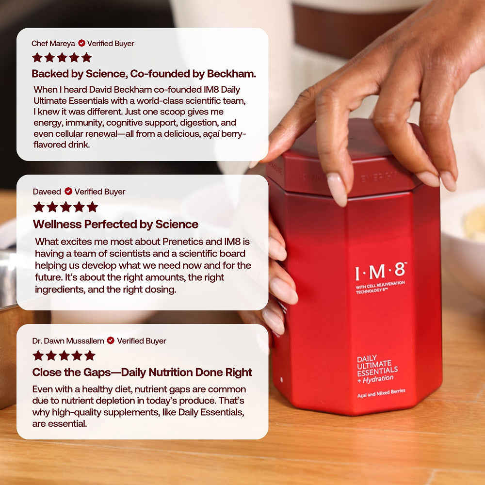 IM8 is the pinnacle of premium core nutrition, born from a collaboration between Prenetics (NASDAQ:PRE), David Beckham as a co-founding partner, and an elite team of scientists spanning space exploration, medical professionals, and academic excellence.