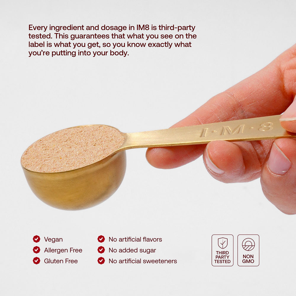 Every ingredient and dosage in IM8 is third-party tested. This guarantees that what you see on the label is what you get, so you know exactly what you’re putting into your body.