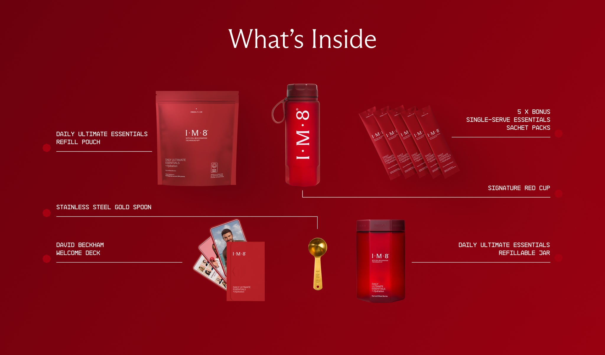 IM8 is the pinnacle of premium core nutrition, born from a collaboration between Prenetics (NASDAQ:PRE), David Beckham as a co-founding partner, and an elite team of scientists spanning space exploration, medical professionals, and academic excellence.